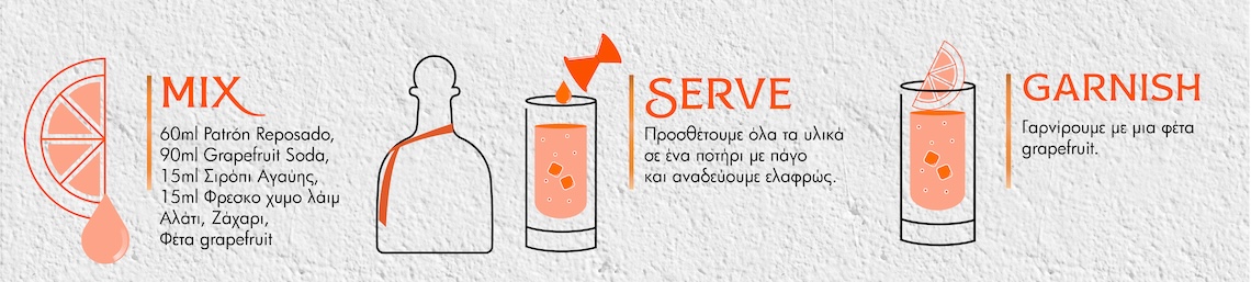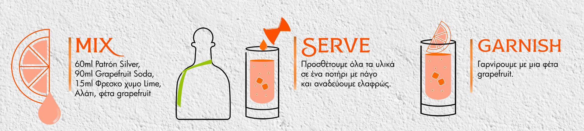 Φίνα. Δυνατή. Σκέτη με πάγο ή σόδα. Βάση για cocktails με παιχνιδιάρικες γεύσεις και χρώματα φρούτων. Βάση για μια Paloma! H Patrón, Super Premium Tequila αναβαθμίζει τα πάντα στην καλύτερη εκδοχή τους.
